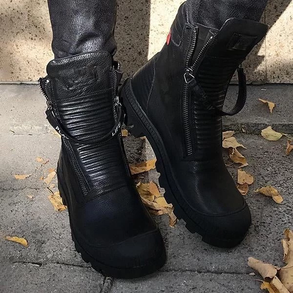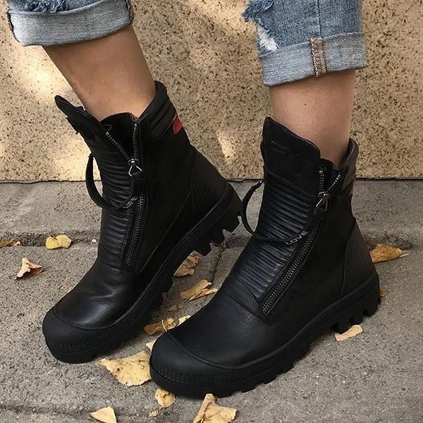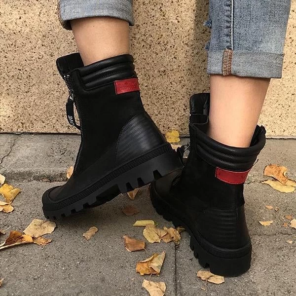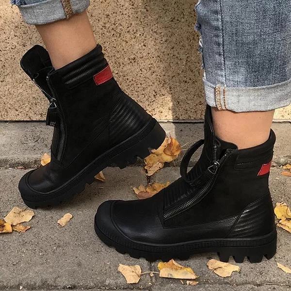 Mollyshoe Comfortable Pu Leather Ankle Boots Low Heel Zipper Boots