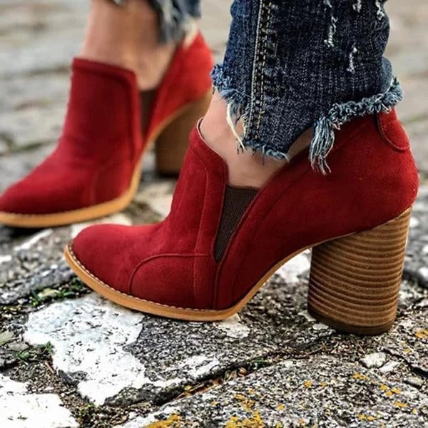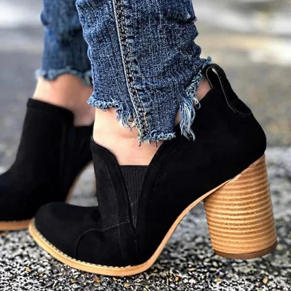Mollyshoe Elegant Slip On Chunky Heel Ankle Boots