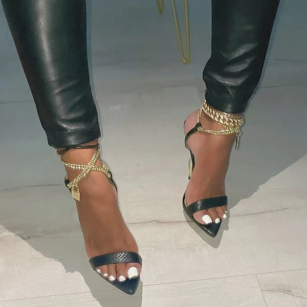 Be the first to review “Mollyshoe Faux Leather Chain Padlock Pointed Toe Lace Up Heels” Cancel reply