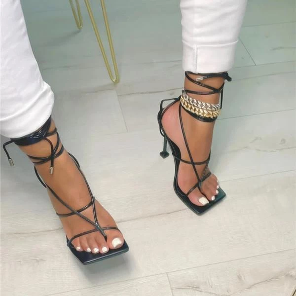 Mollyshoe Sexy Open Squared Toe Thong Strap Heels