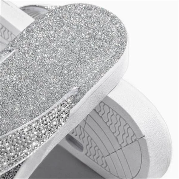 Mollyshoe Silver Summer Artificial Leather Rhinestone Seaside Slippers