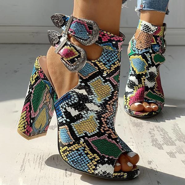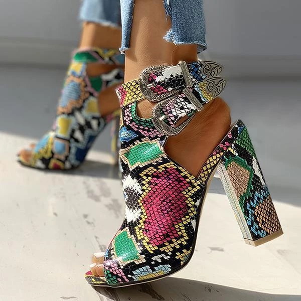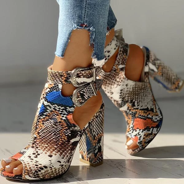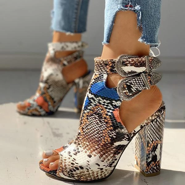 Mollyshoe Snakeskin Ankle Buckled Chunky Heels
