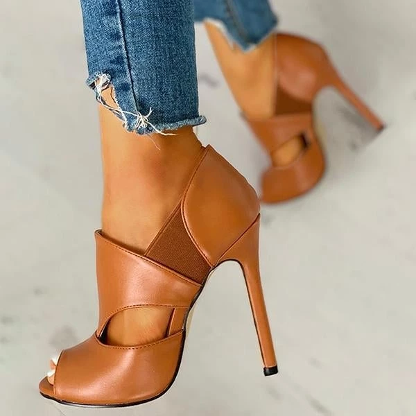 Mollyshoe Solid Hollow Out Design Peep Toe Thin Heels