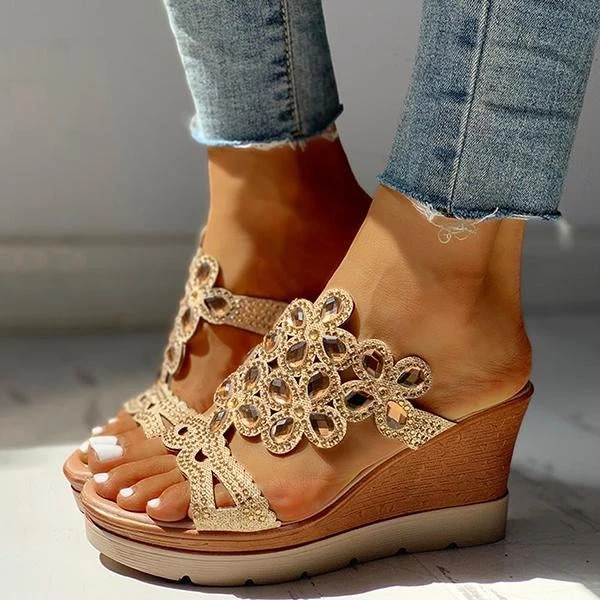 Mollyshoe Studded Platform Wedge Casual Slingback Sandals