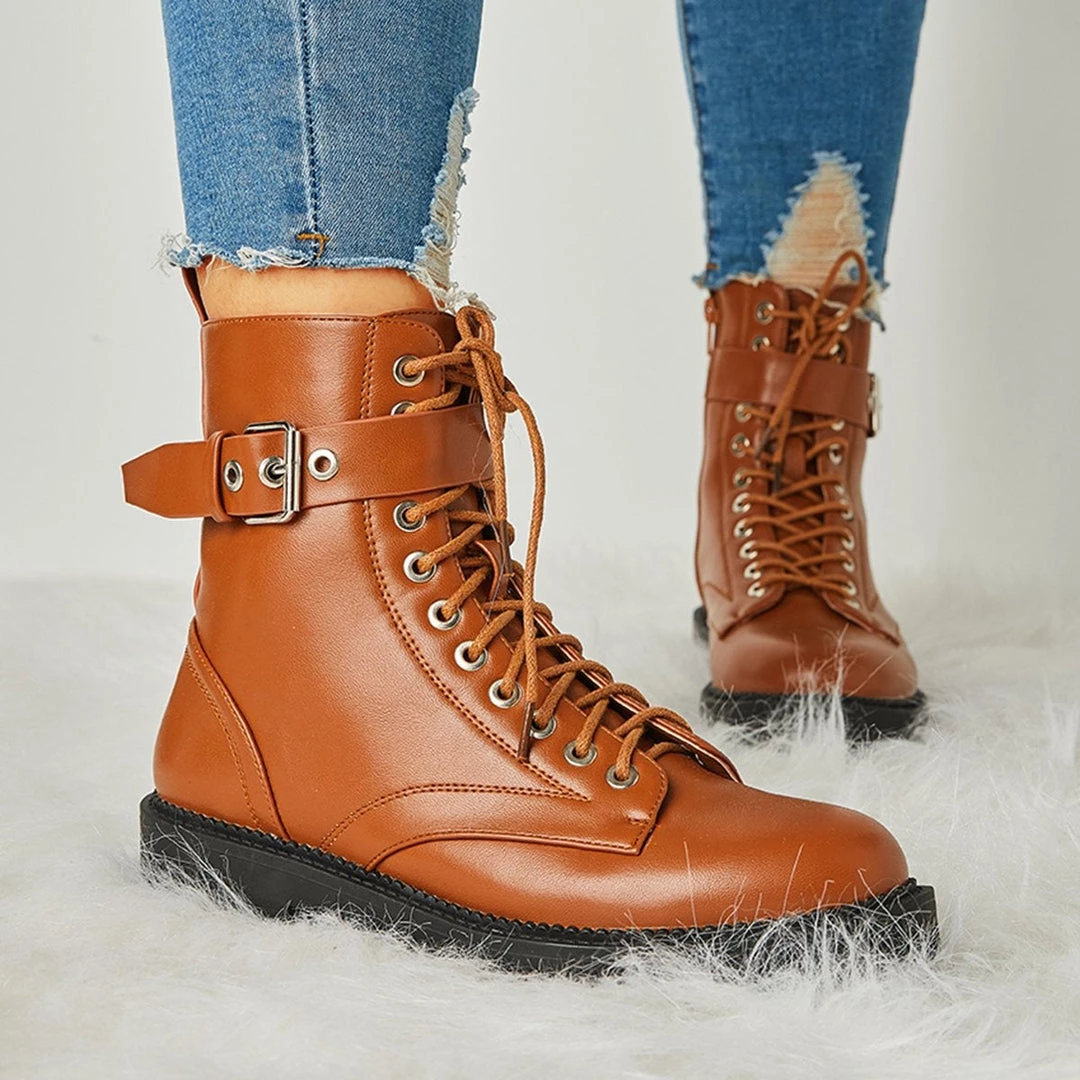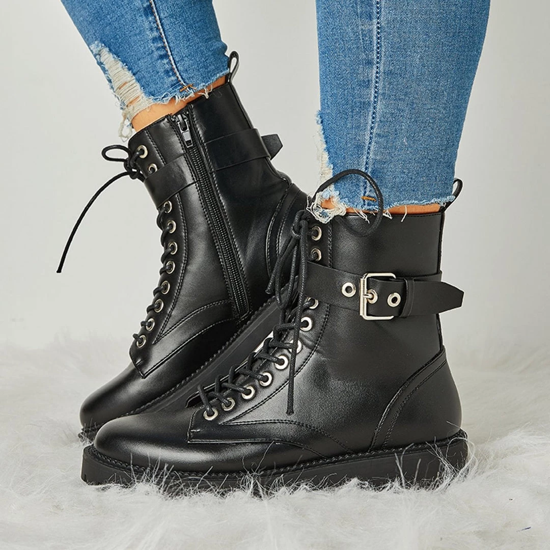 Mollyshoe Women’s Fashion Buckle Combat Leather Boots