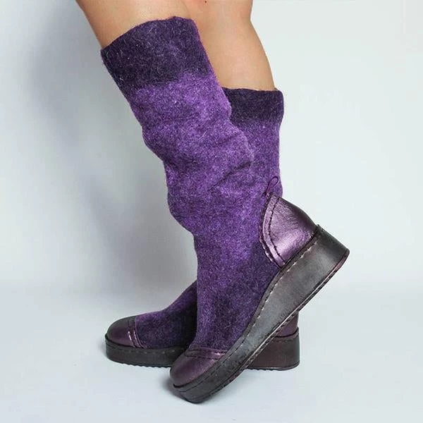 Mollyshoe Women Stylish Mixed Colors Slip On Platform High Boots