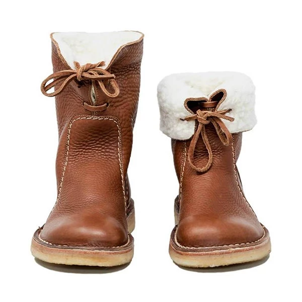 Mollyshoe Women Winter Vintage Boots Warm Unisex Lace-up Shoes
