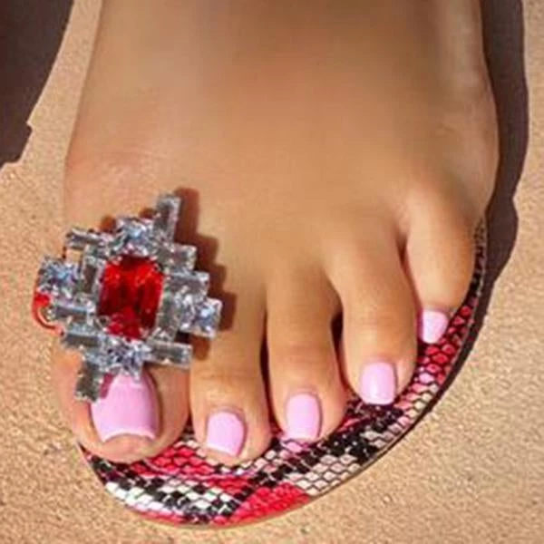 Mollyshoe Womens Colorful Snakeskin Print Flat Strap Sandals Ring Toe Gladiator Shoes